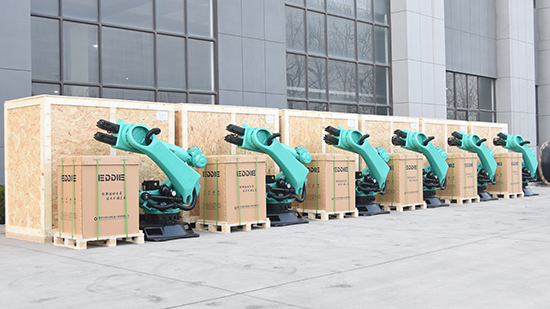 此次出口交付的是PA视讯官方网站艾創公司首批研發的AT210R2700A重載工業(ye) 機器人。產(chan) 品有效負載210KG,臂展達2700mm,末端重複定位精度±0.06mm,末端線速度2m/s,手腕部防護等級達到IP65。適用於(yu) 大空間、大負載、運行速度快、精度要求高的場合,如機床碼垛、搬運、塗膠等應用場景。產(chan) 品性能達到國內(nei) 外同類產(chan) 品技術水平,在4年多的集成應用中,贏得客戶的信任和好評。